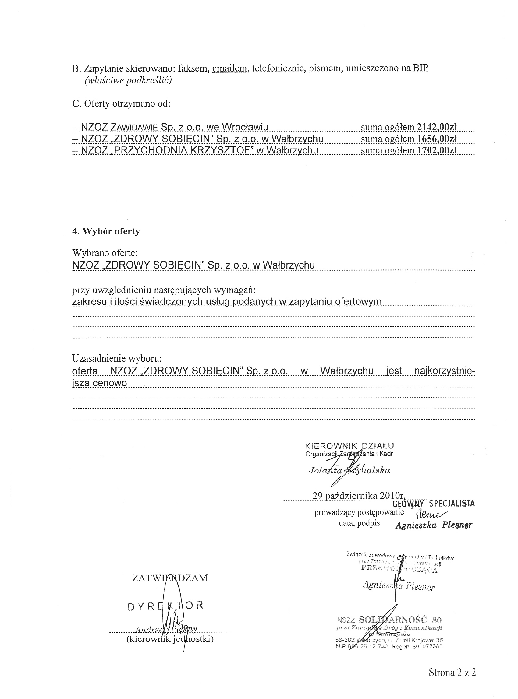 Wybór oferty DO/64/5/2010 strona 2 - postać